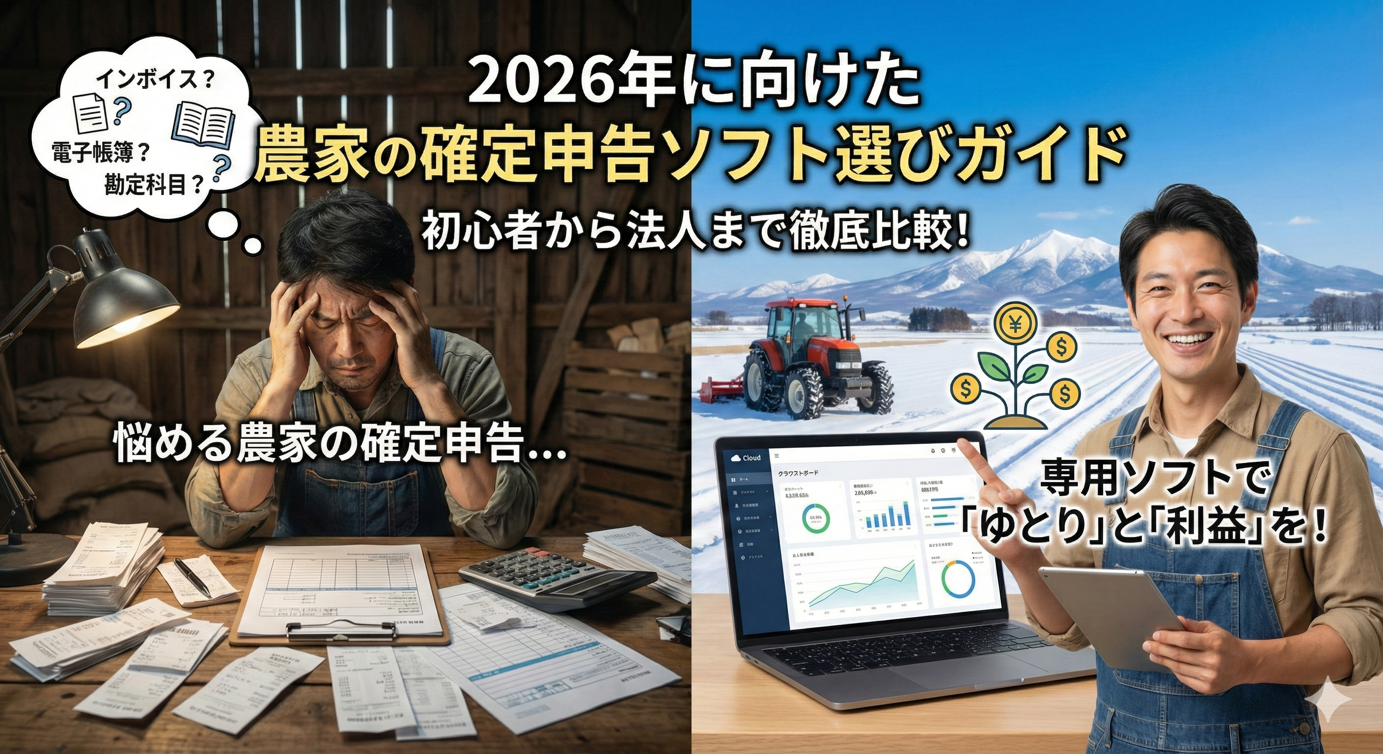 農機部門ブログ 2025/12/25 【2026年を見据えて】農家の確定申告ソフトおすすめ比較!インボイス&青色申告も完全攻略で農業の会計もらくらく! -